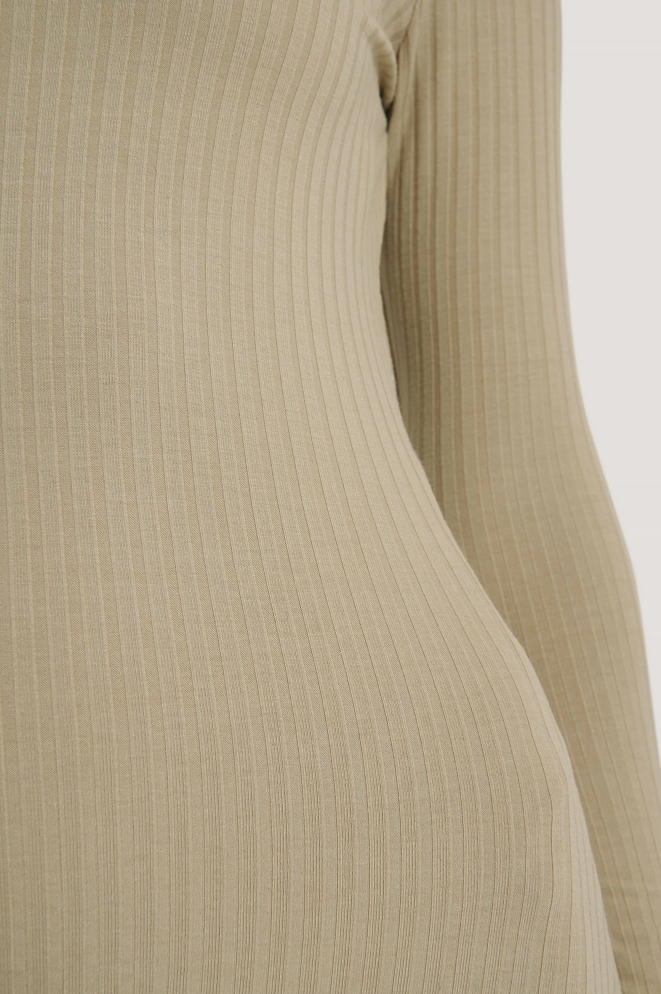 Cette robe a une encolure carrée, des manches longues, un design à côtes, une coupe slim et une taille courte.