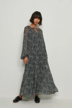 Cette robe a un col arrondi avec bandes, une manche ballon en bande élastique à l’extrémité, des détails de couture au bas, une doublure intérieure, une matière rigide et une coupe oversize.