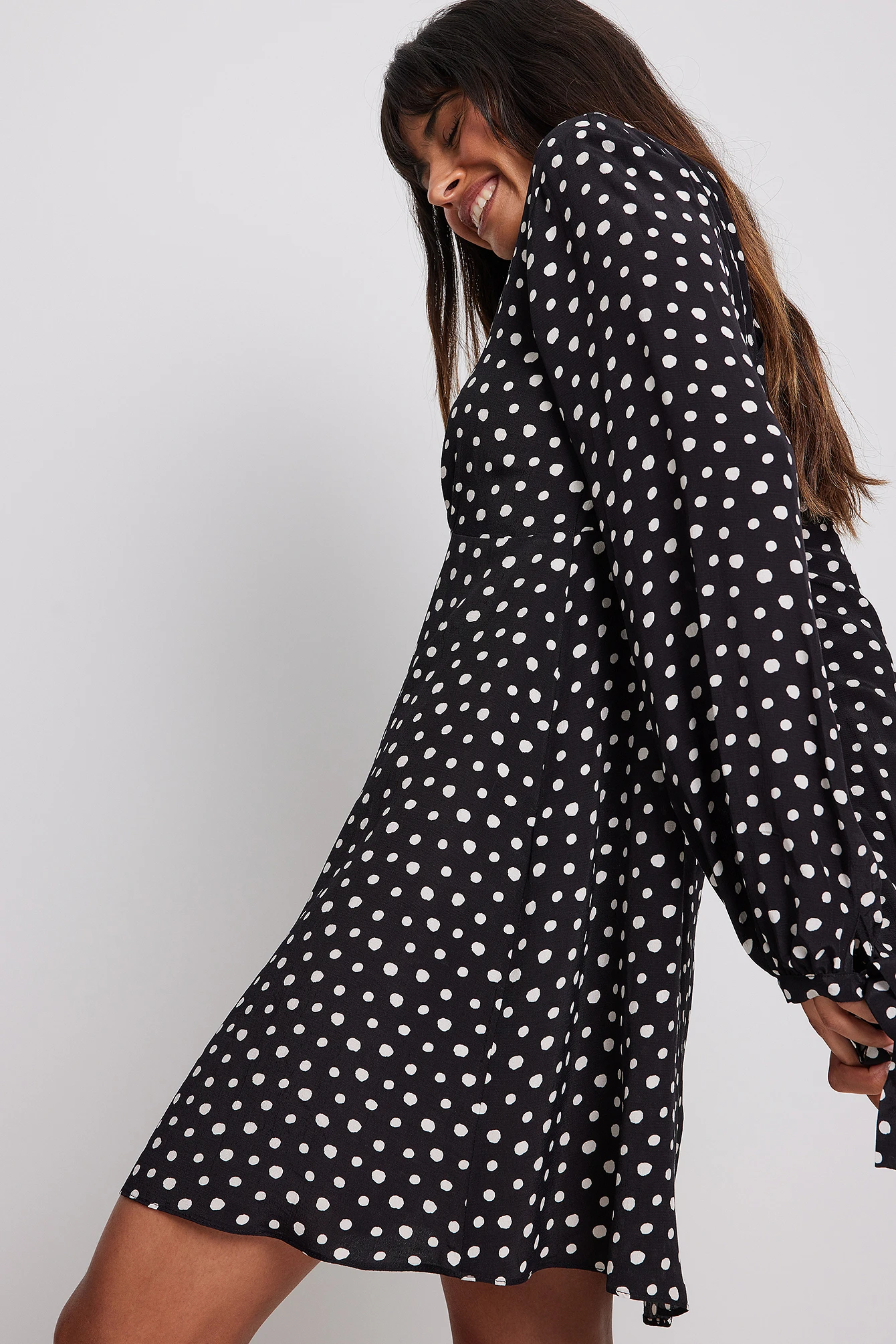 Cette robe courte a des manches longues avec noeud, une encolure bateau large avec bouton de fermeture à l’arrière, une fermeture éclair latérale et une coupe fluide.