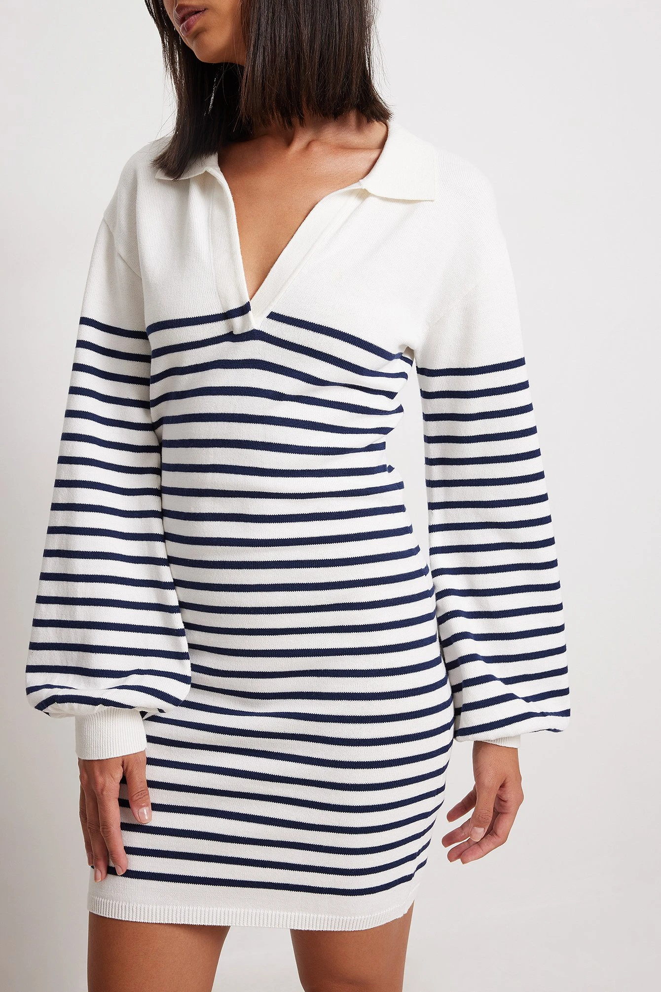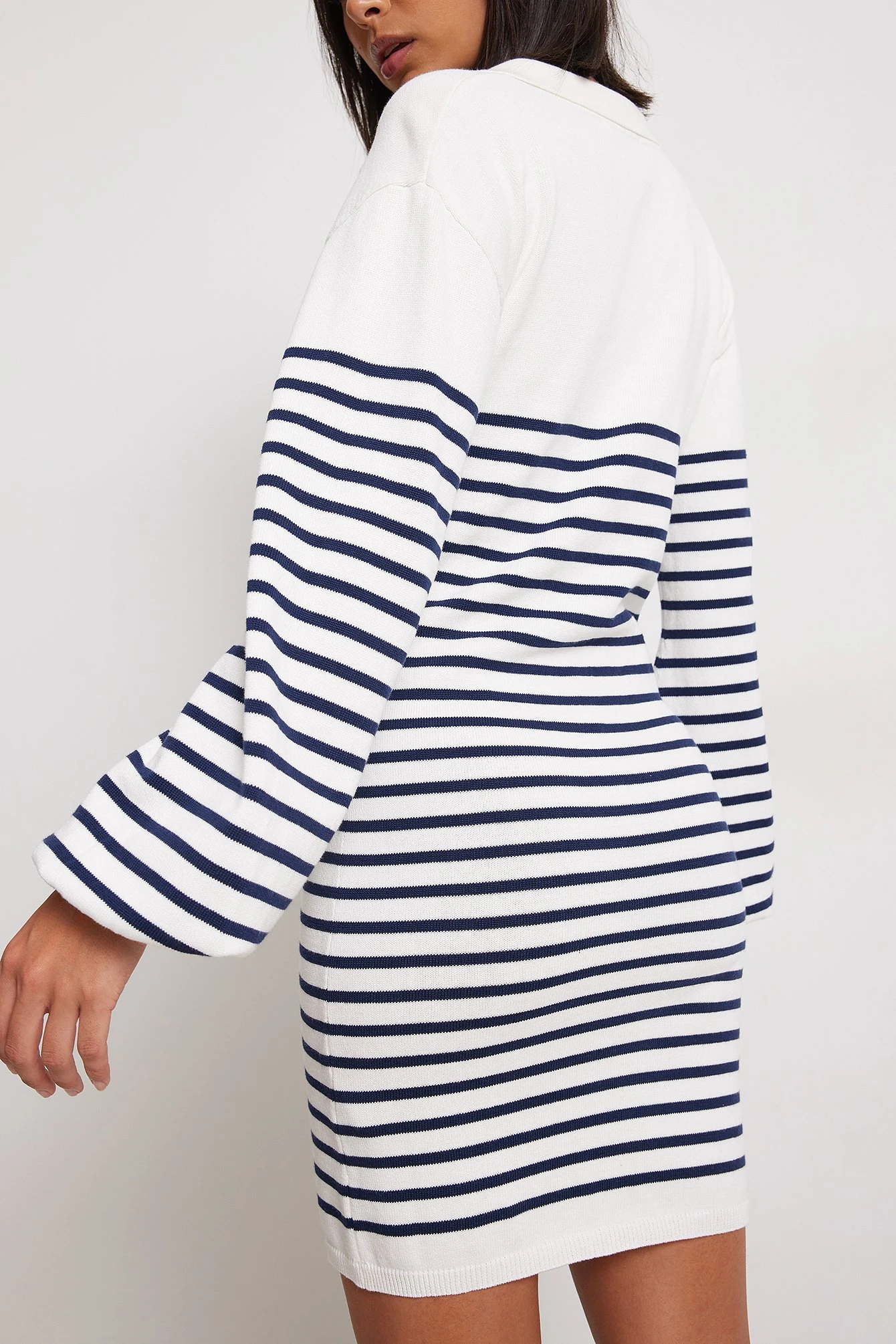 Cette robe a un col, des manches longues avec revers côtelés et un ourlet à nervures.