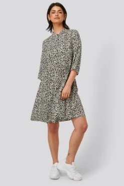Cette robe midi est douce et idĂ©ale pour l’Ă©tĂ© et a des demi-manches, un bouton de fermeture Ă l’avant et une coupe fluide.