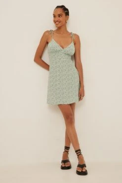 Cette robe a des bretelles réglables et fines, un col en V avec bonnets ruchés, des smocks à l’arrière, une fermeture éclair latérale, une taille courte et une coupe fluide.