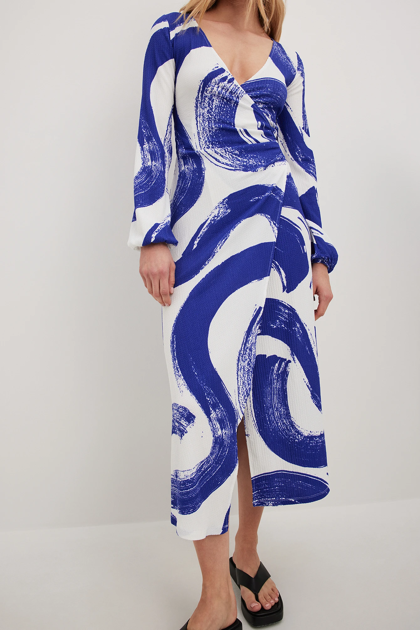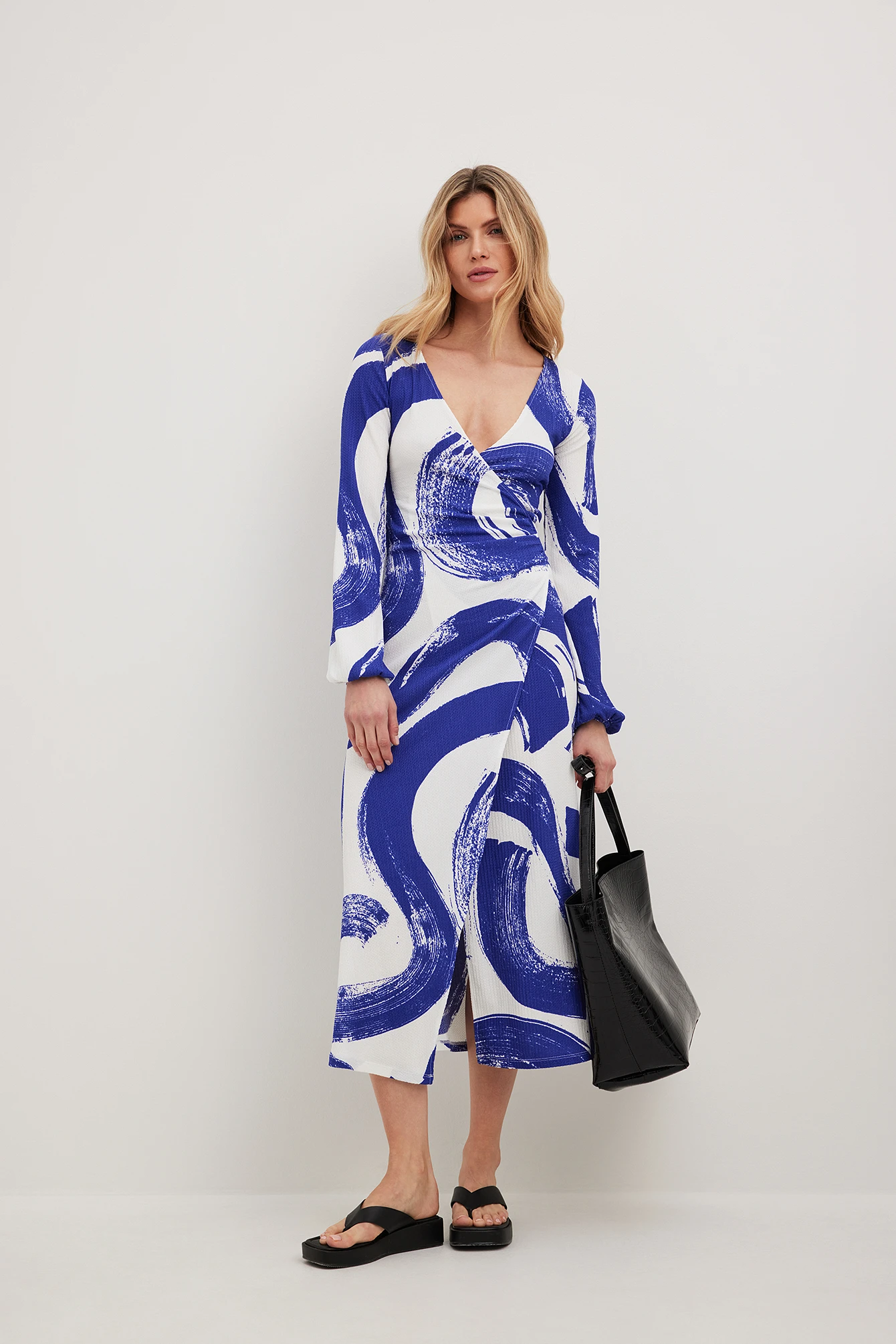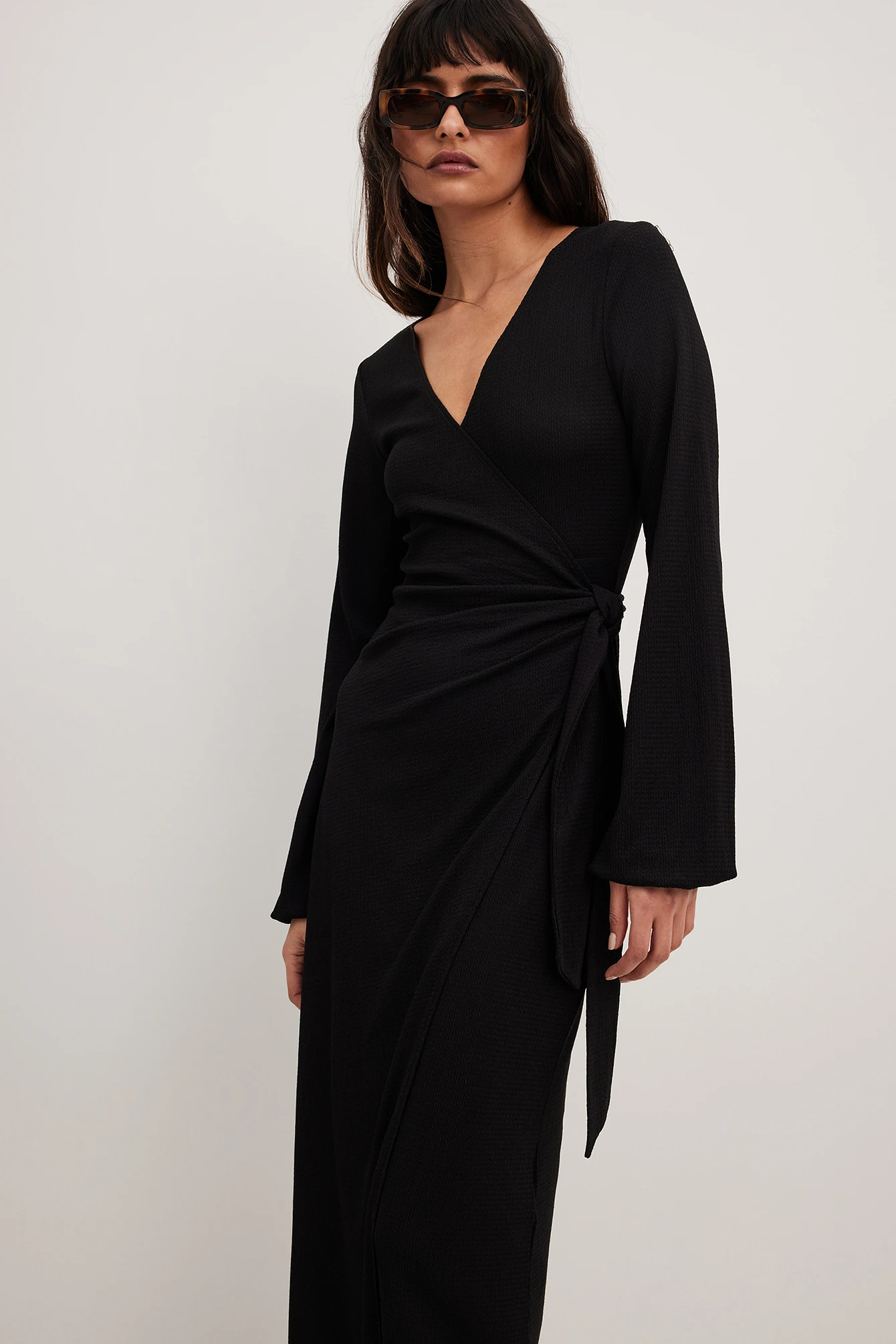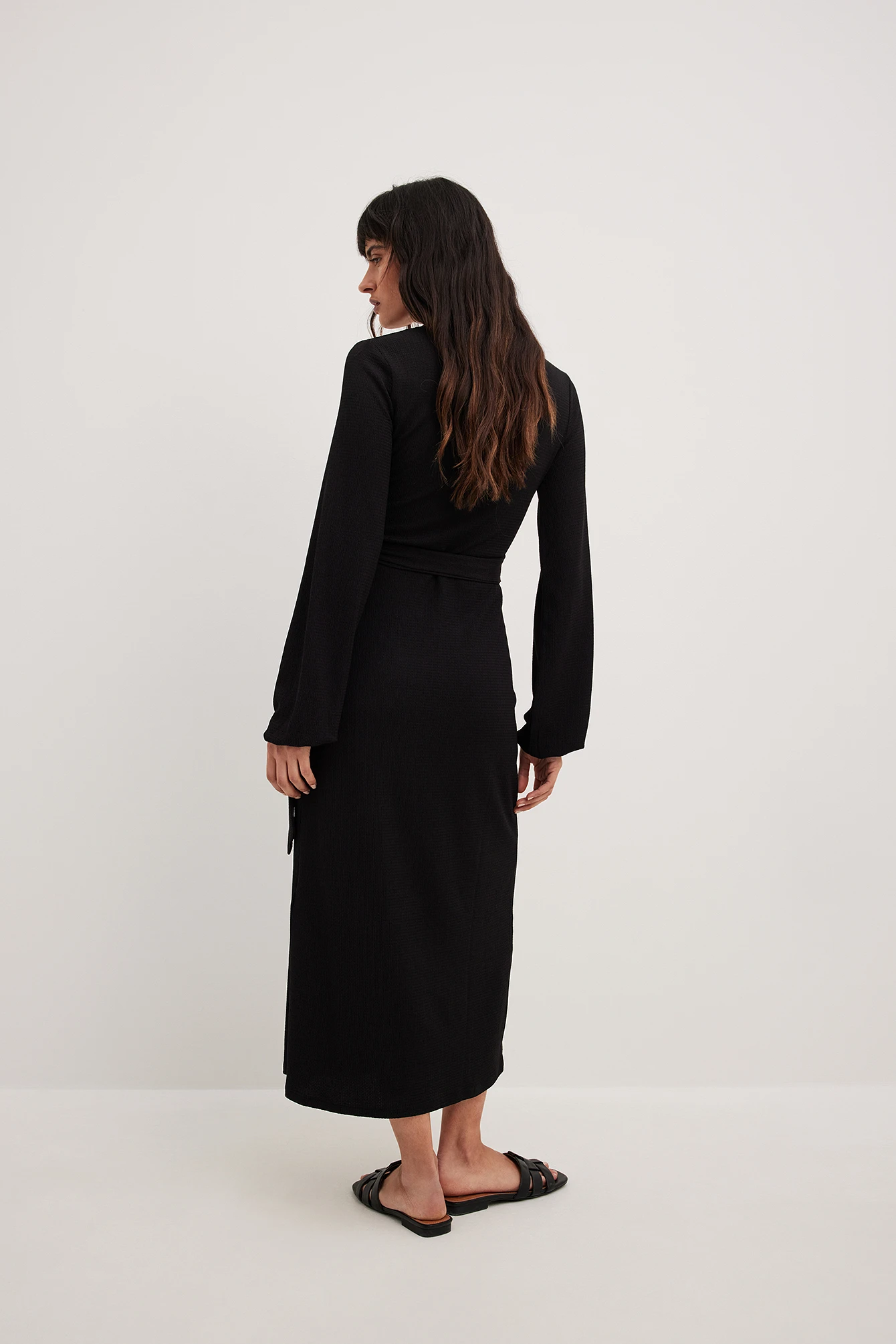 Cette robe midi a une matière texturée. Elle a une coupe fluide et un design enveloppant avec col en V. Cette robe midi a des manches longues.