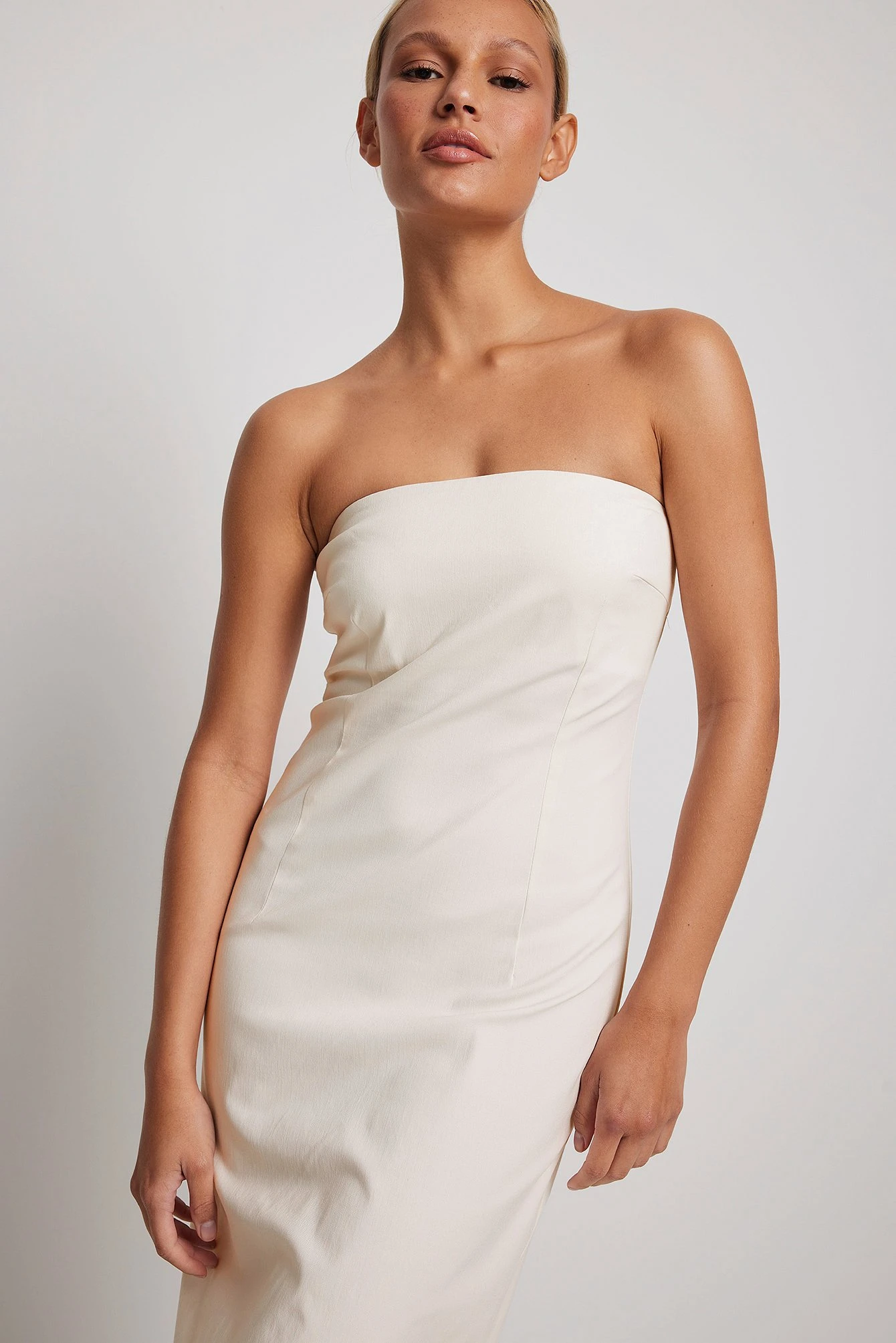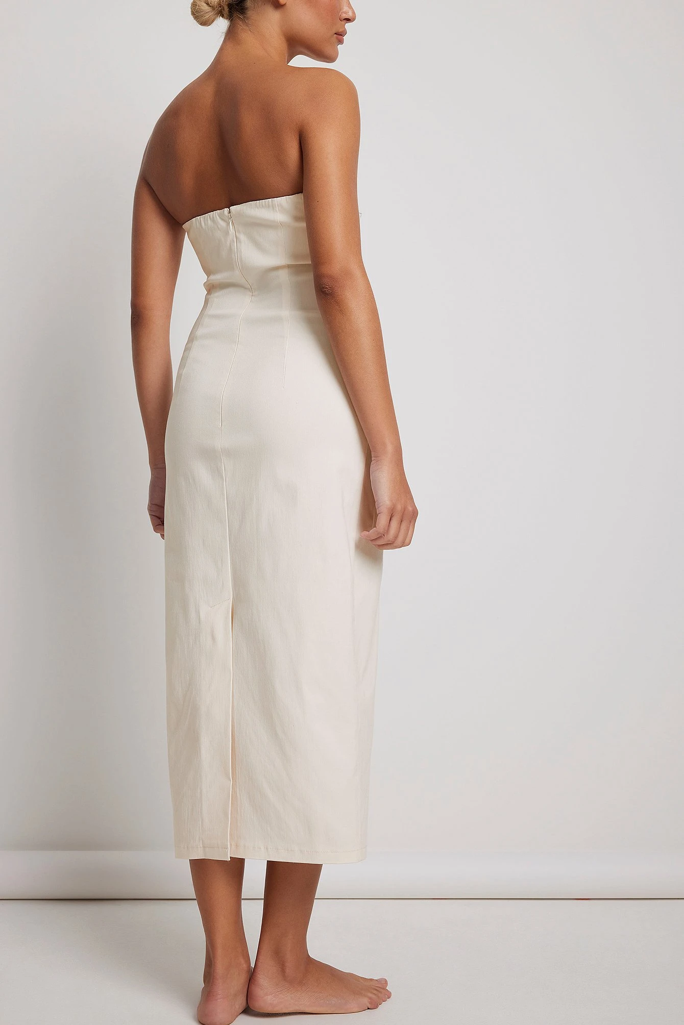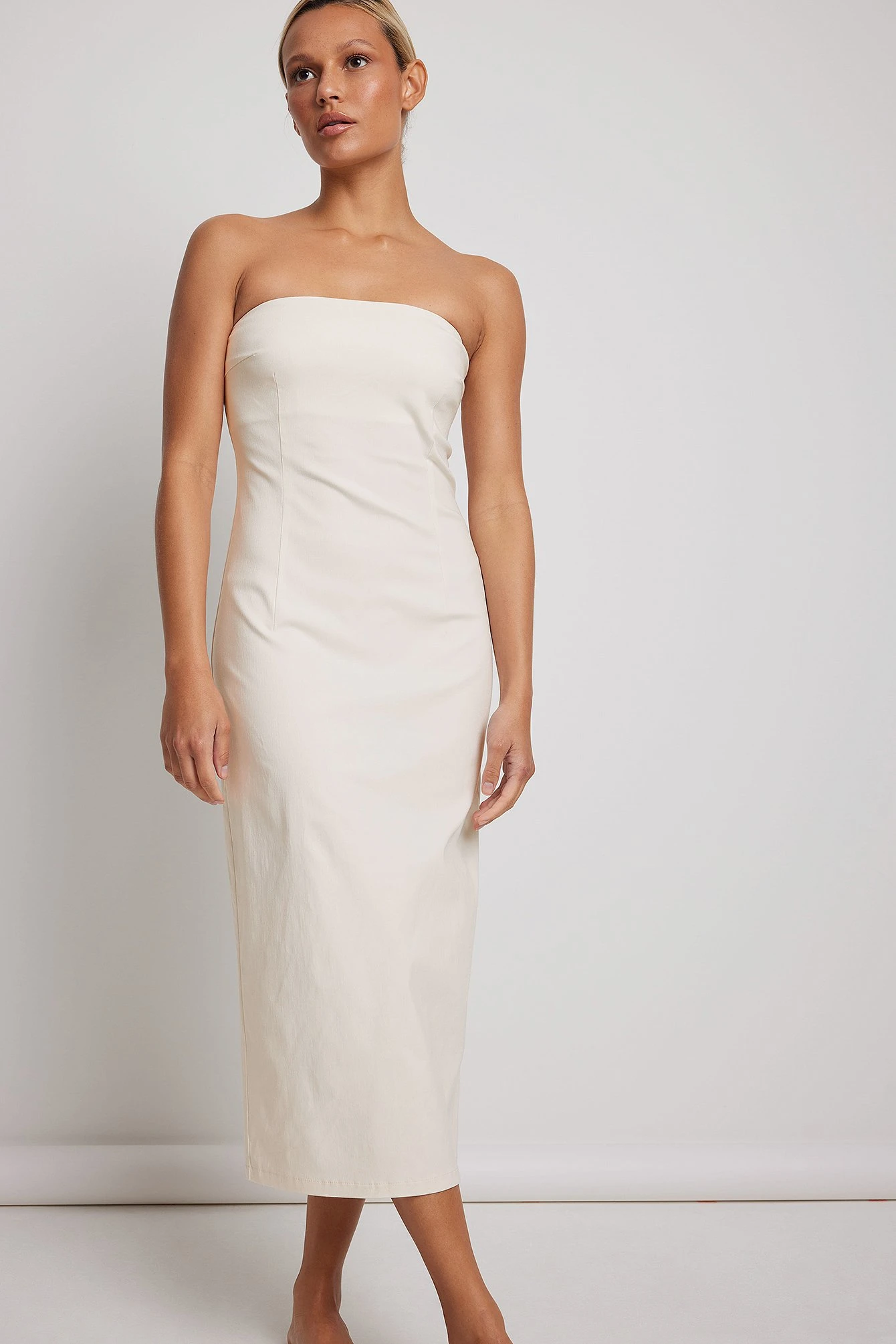 Cette robe midi a un design Ă bandeau, une coupe moulante, un tissu Ă©lastique et une fermeture Ă©clair Ă l’arrière cachĂ©e.