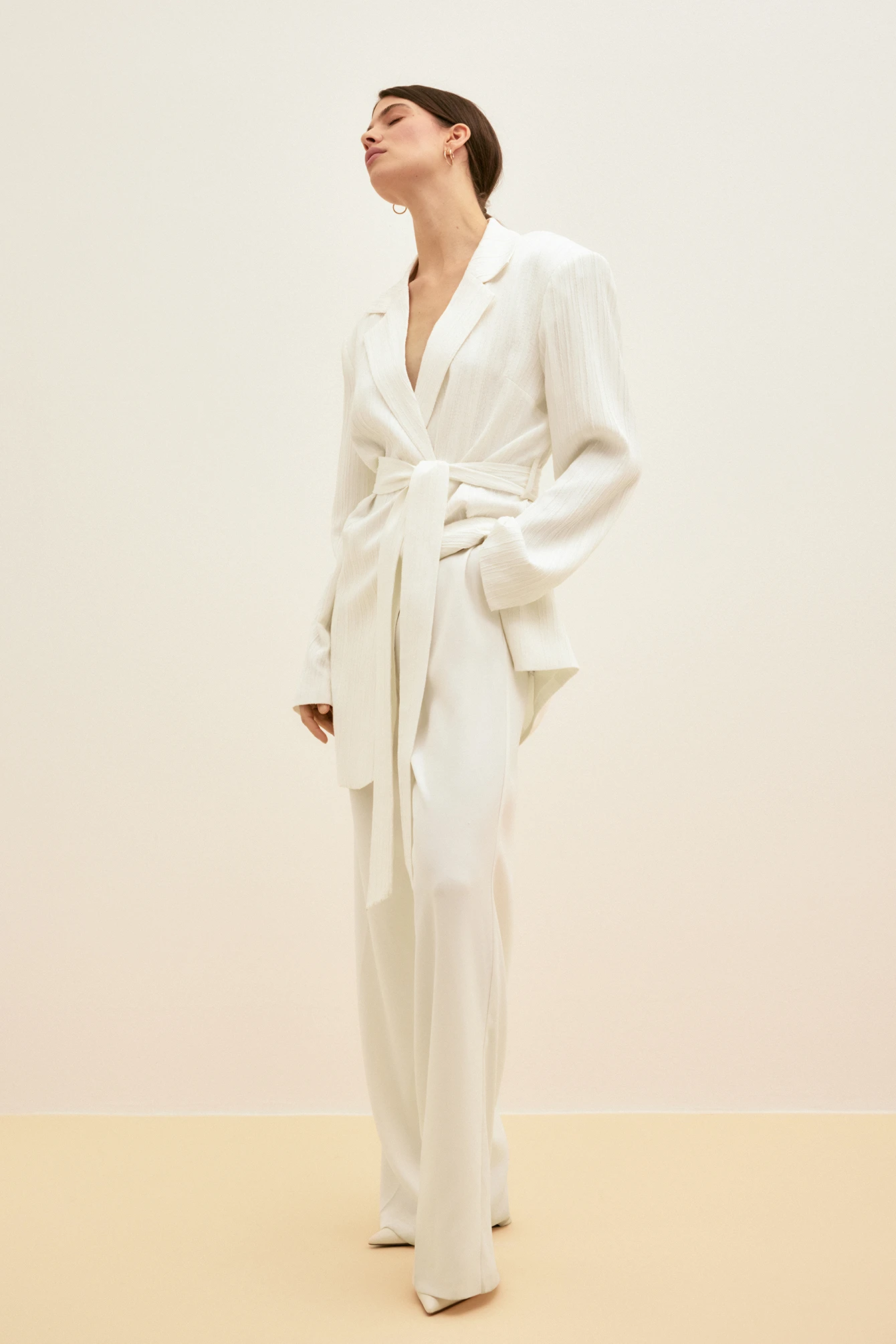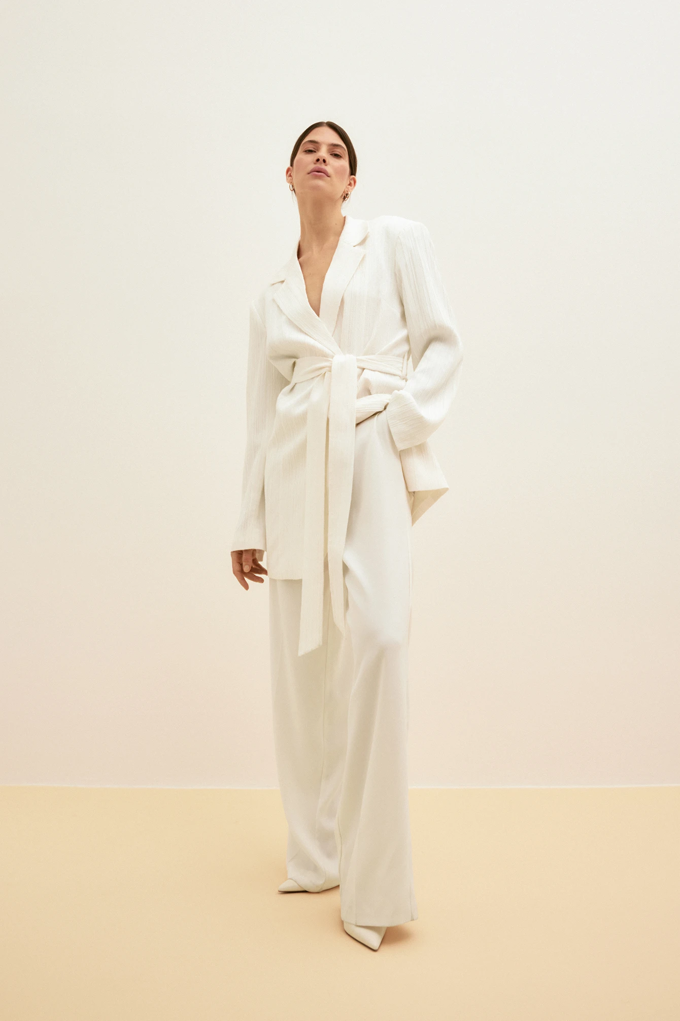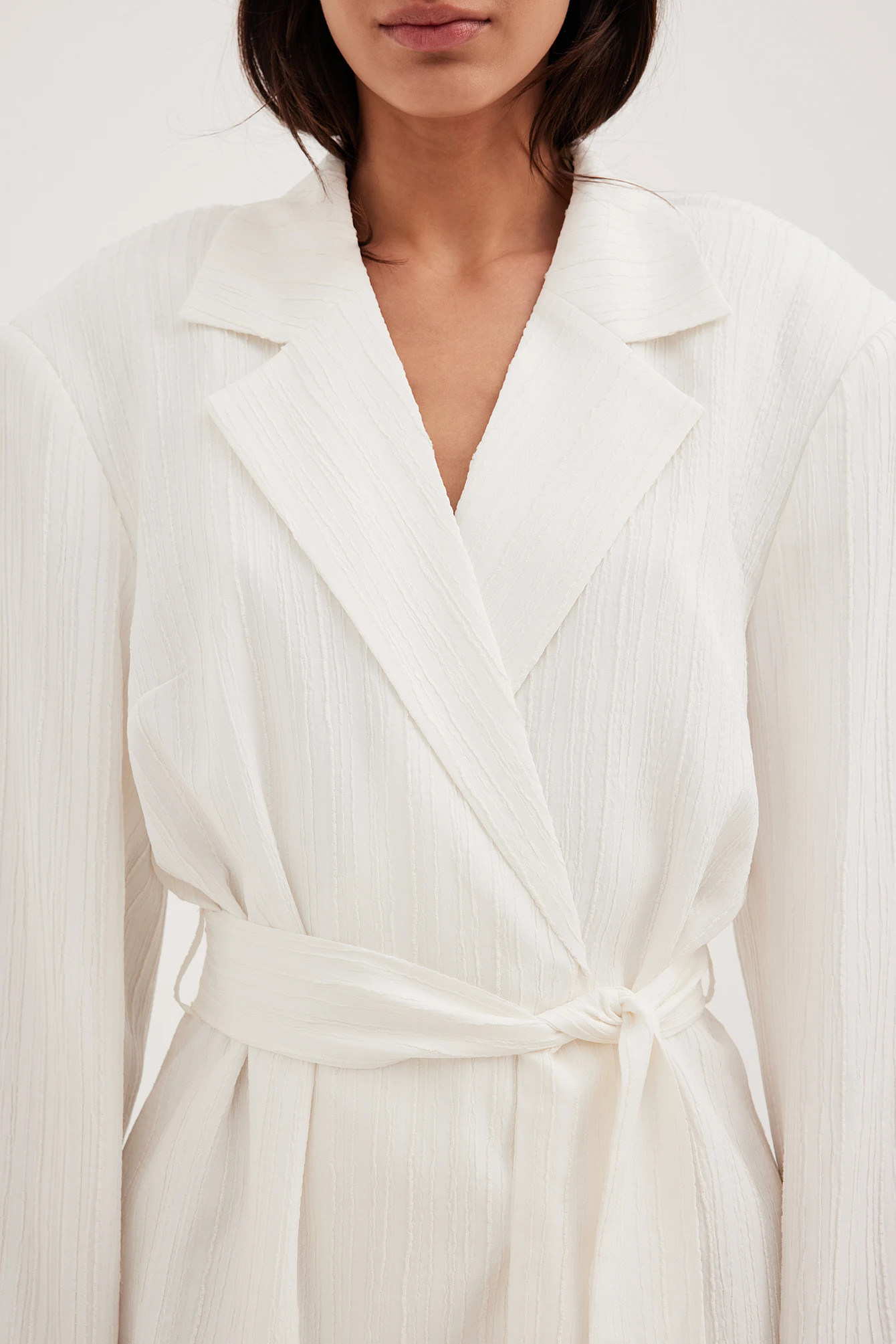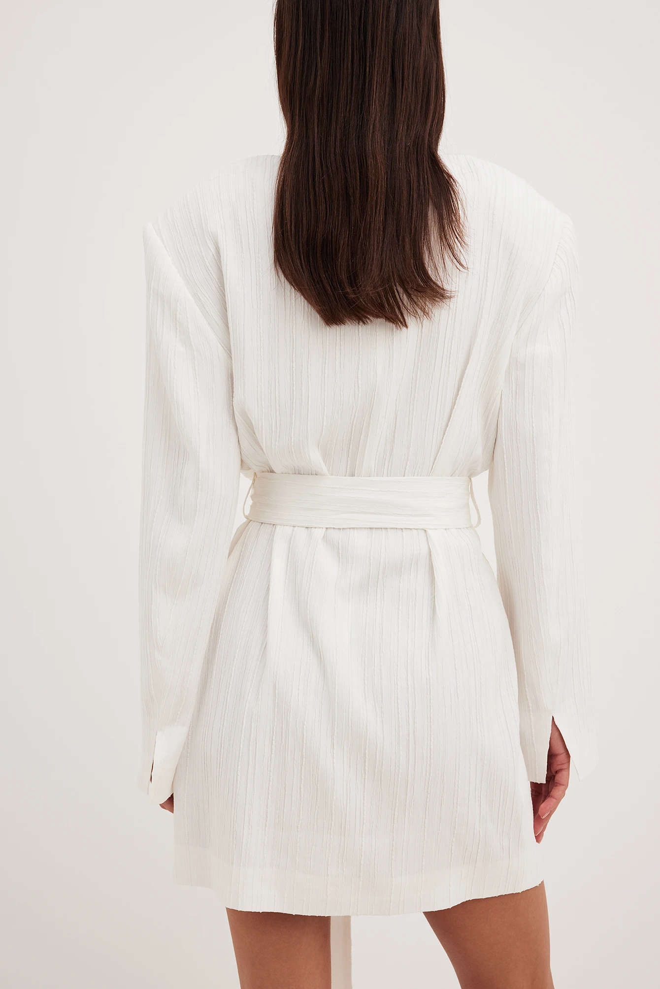 Cette robe courte a une matière structurée. Elle a un modèle de blazer à superposition avec bouton-pression à l’avant et ceinture ajustable. Notre robe courte a un col à revers, des épaules rembourrées et un petit détail fendu aux manchettes.