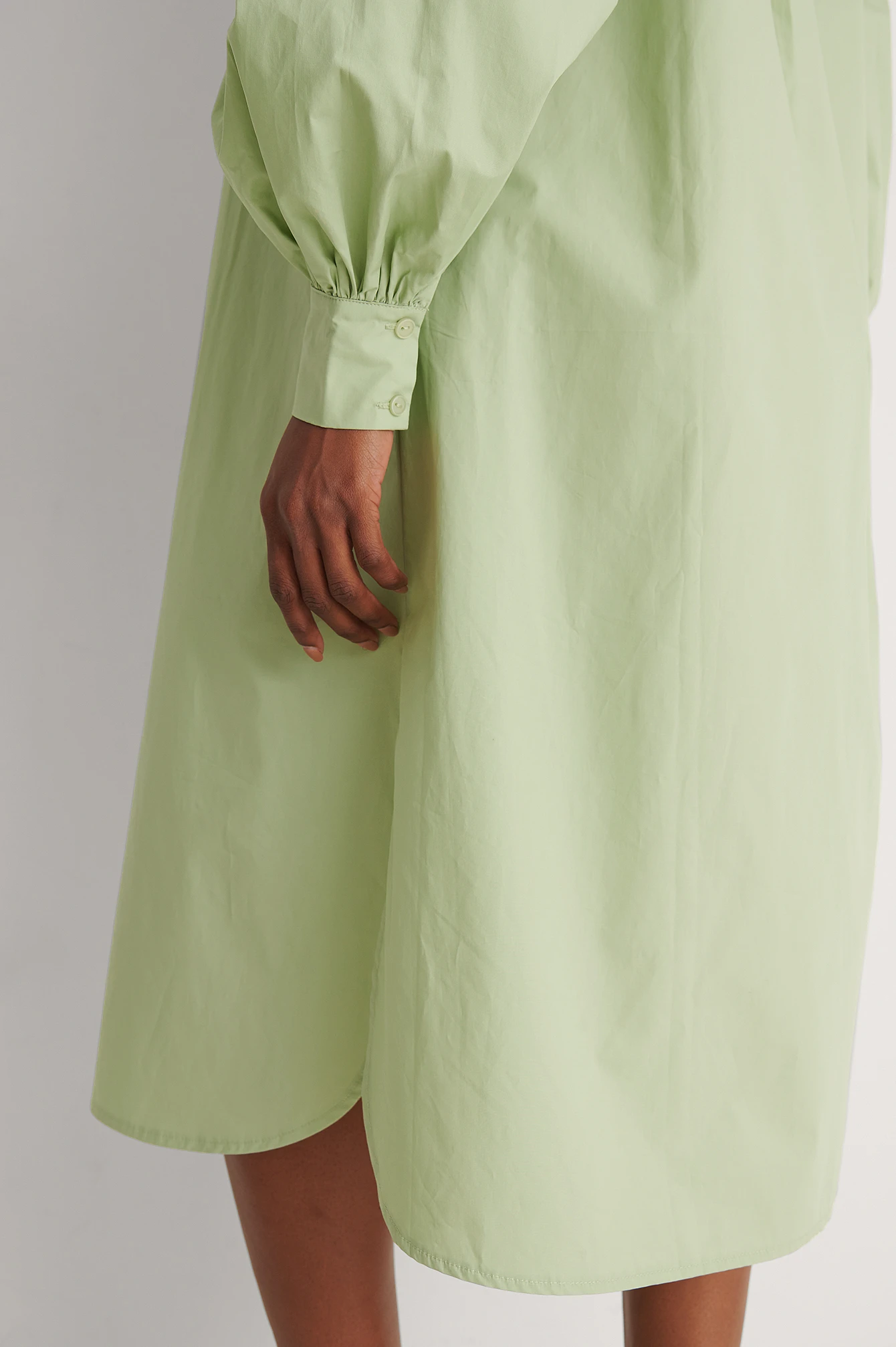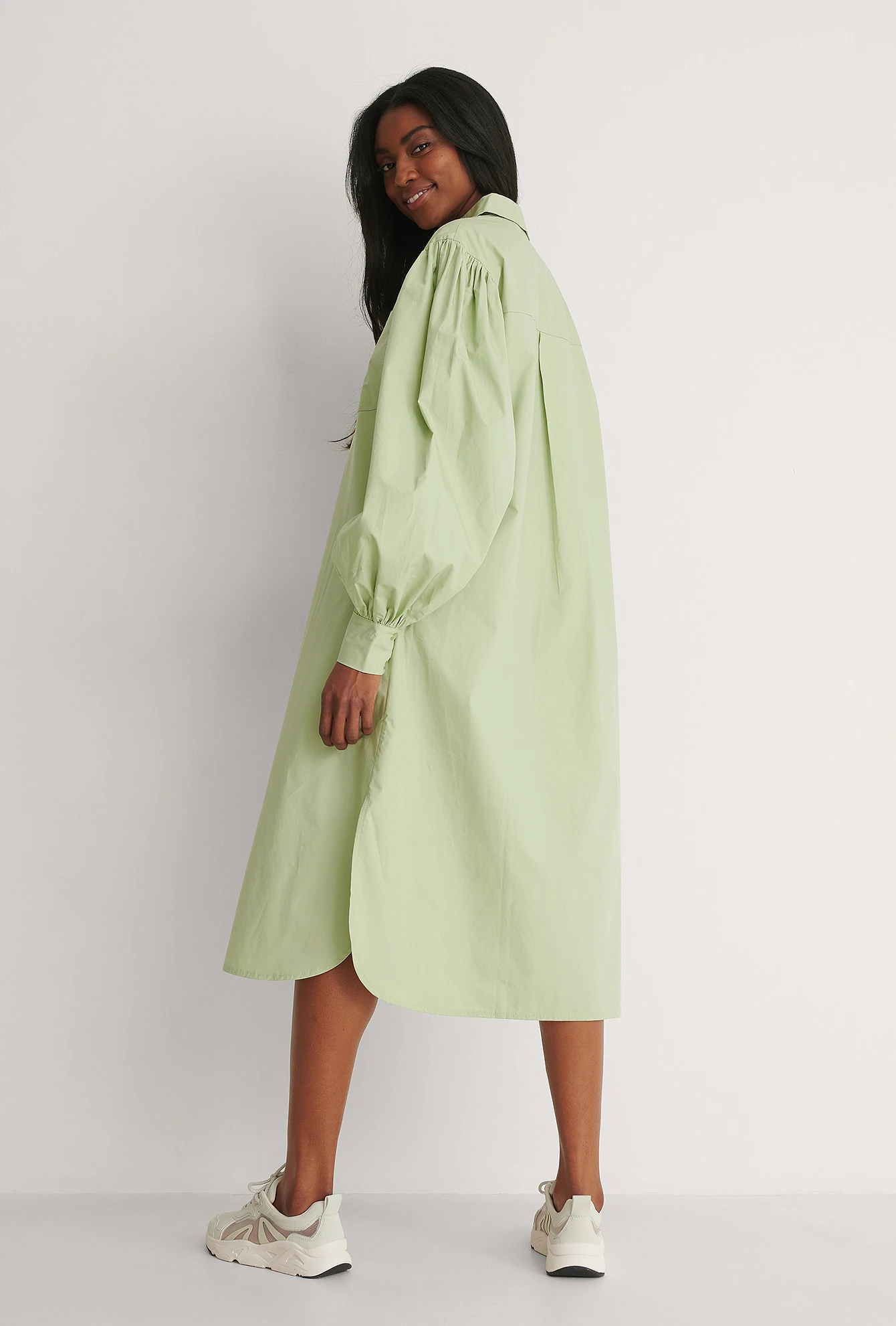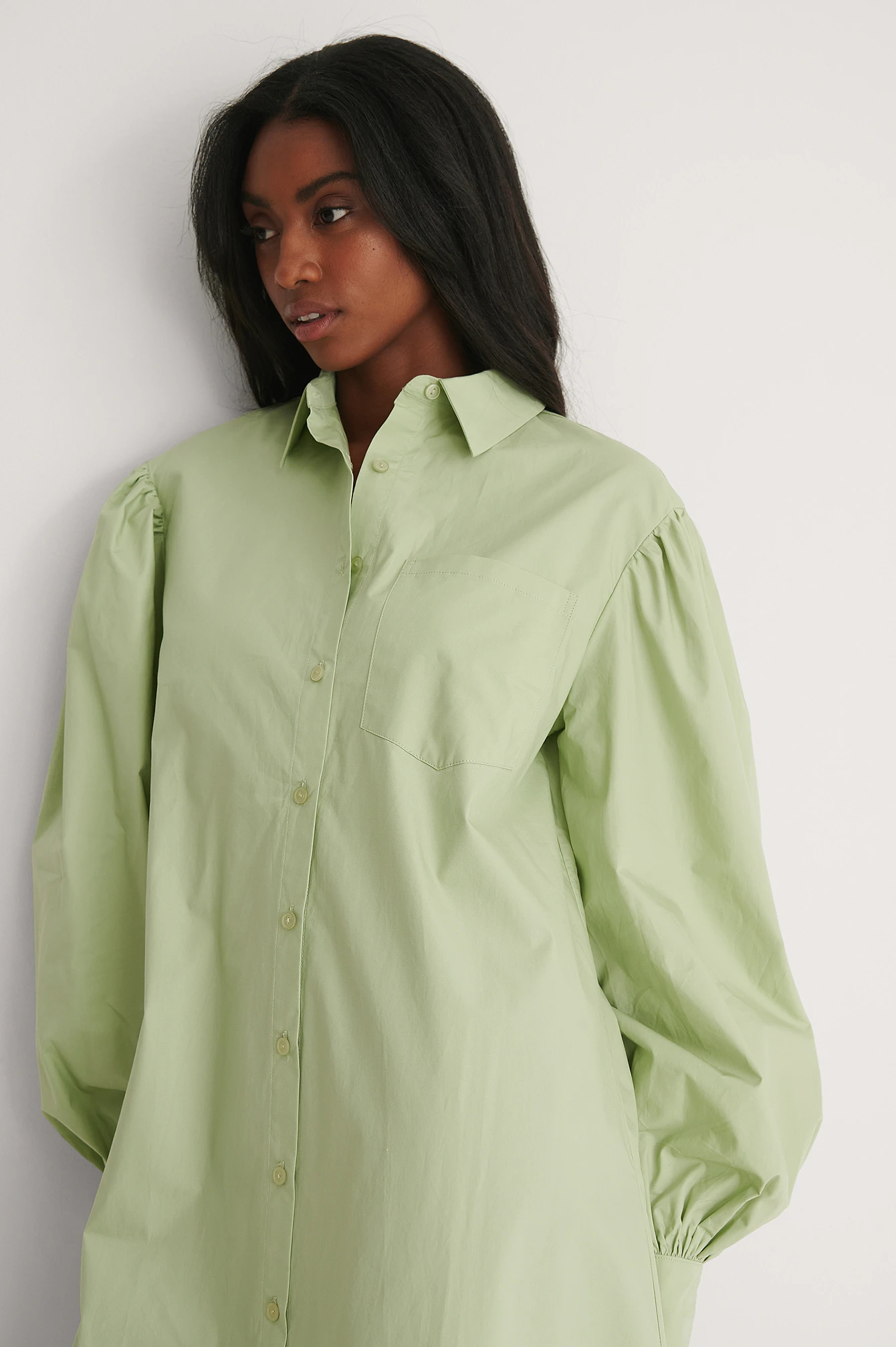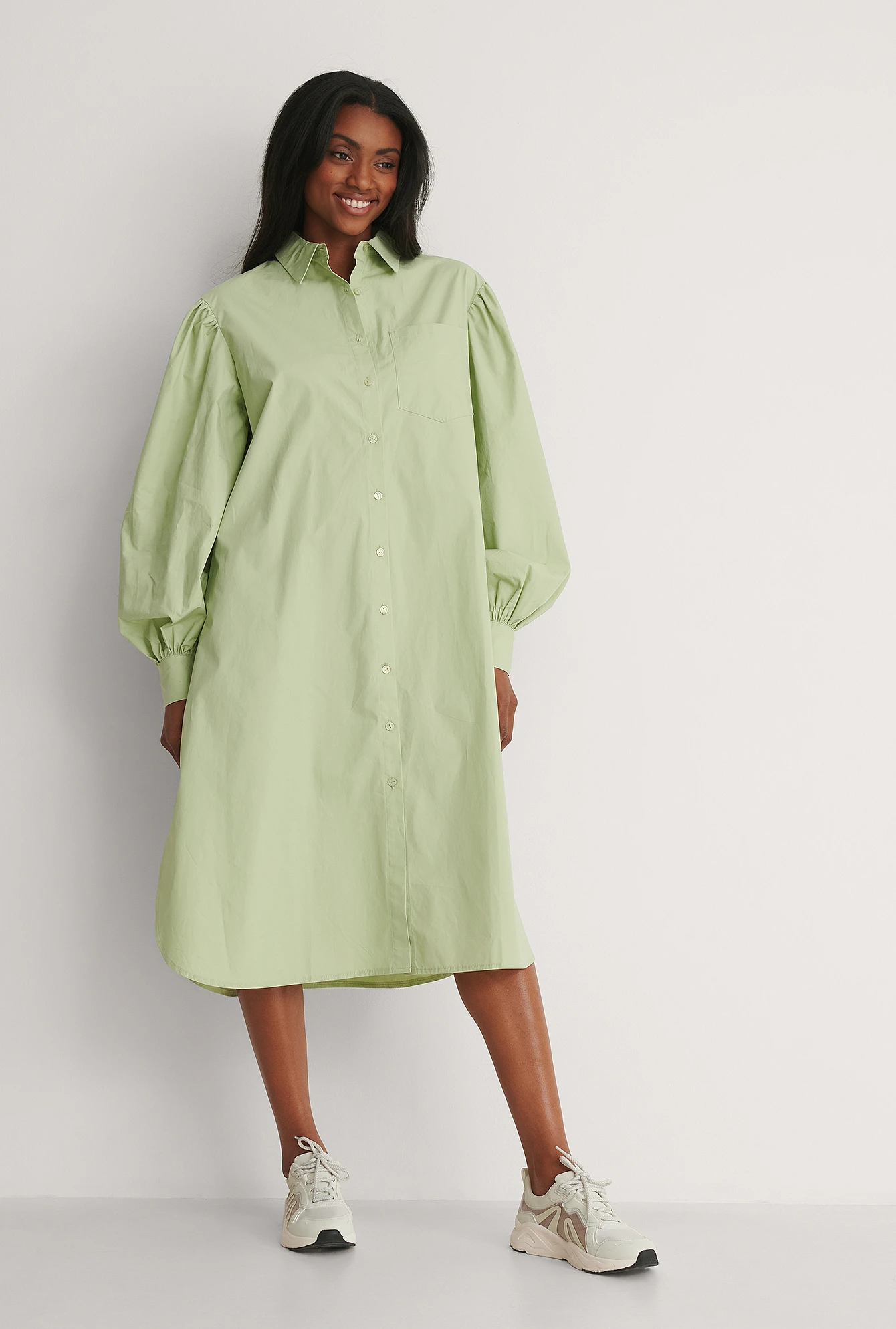 Cette robe chemise a un col classique. Elle a des boutons de fermeture à l’avant et des longues manches bouffantes avec deux boutons de manchette. Cette robe chemise a 1 poche à l’avant, une fente sur les côtés et une coupe oversize avec taille longue.