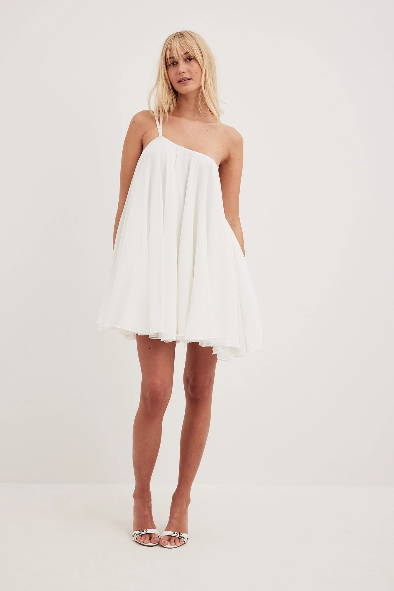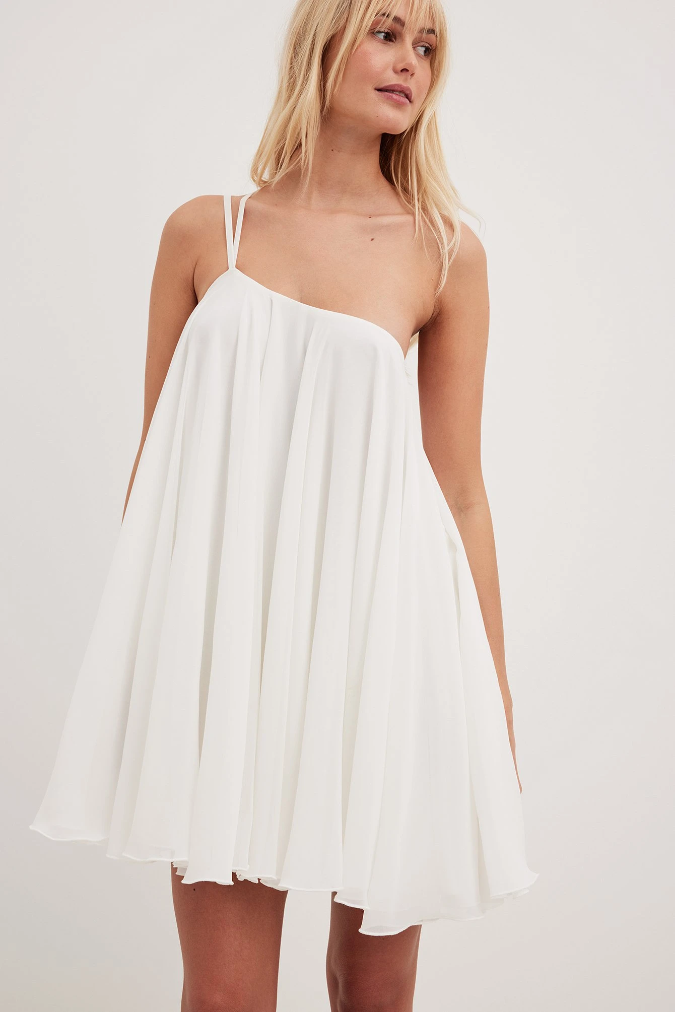 Cette robe est fluide et a une taille courte. Elle a un style à une épaule et une bretelle fine double et non amovible avec ajusteur. Cette robe a une fermeture éclair sur la manche et une doublure.