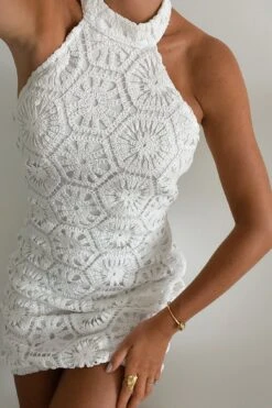 Cette robe a une taille courte. Elle a une coupe moulante moulante et un design tricoté. Cette robe a une bretelle tour du cou, deux boutons de fermeture, un décolleté dos, une fermeture éclair latérale et une doublure.