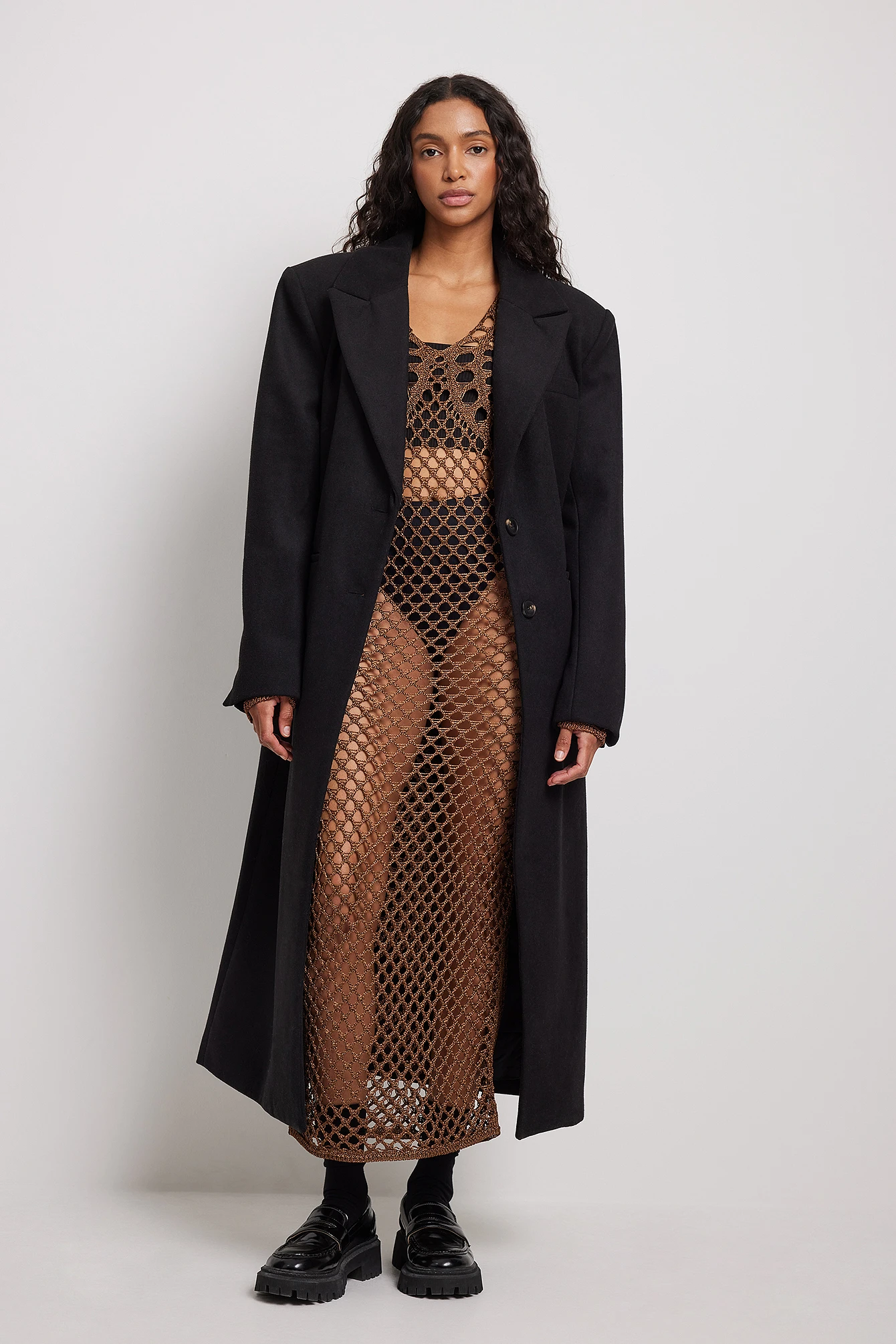 Cette robe longue est col en v et a un crochet, des manches longues et une coupe moulante.
