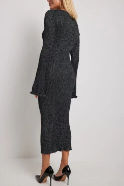 Cette robe midi a une coupe personnalisée, une garniture intérieure en silicone, une fermeture éclair latérale et un détail fendu arrière.