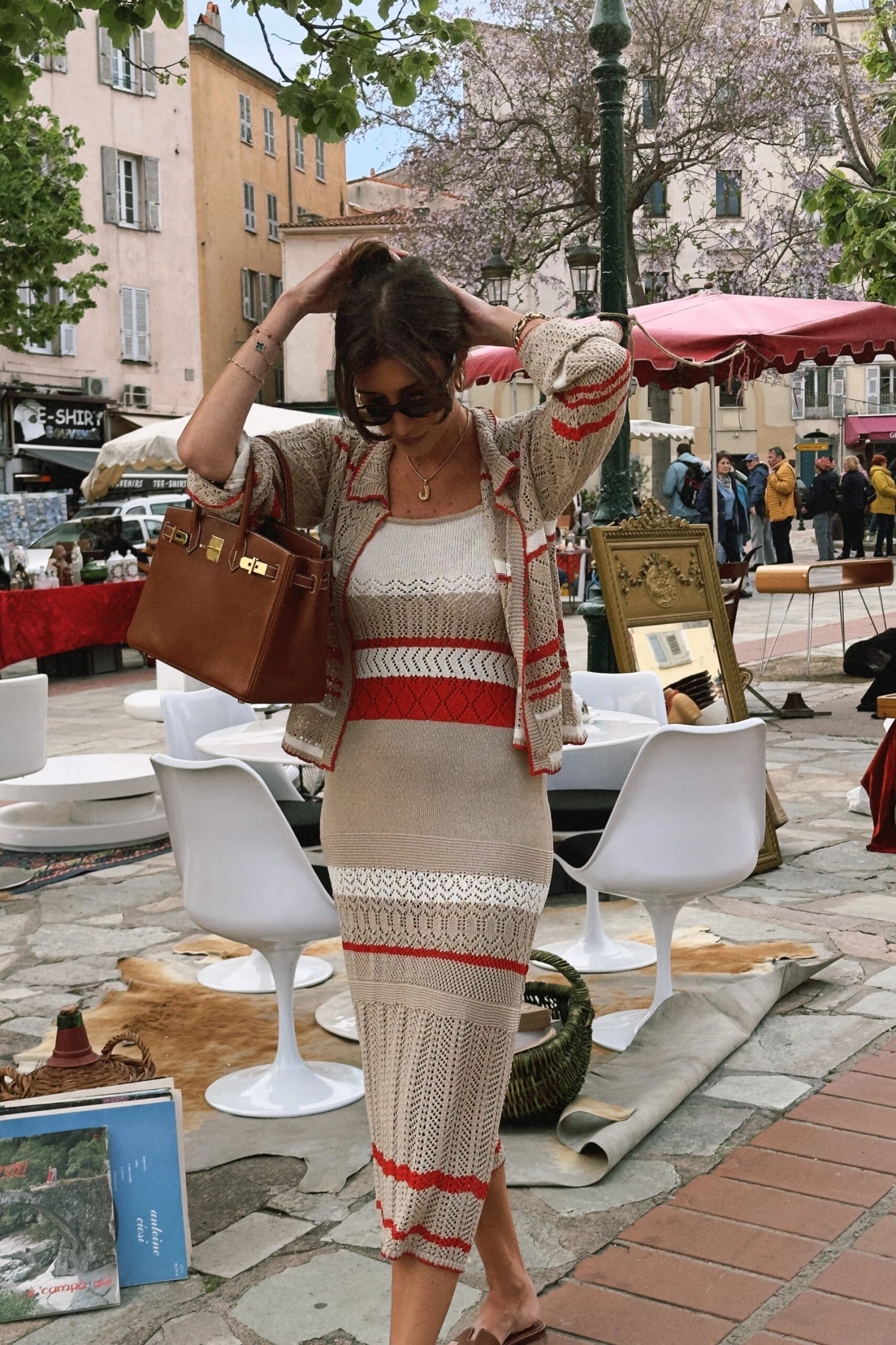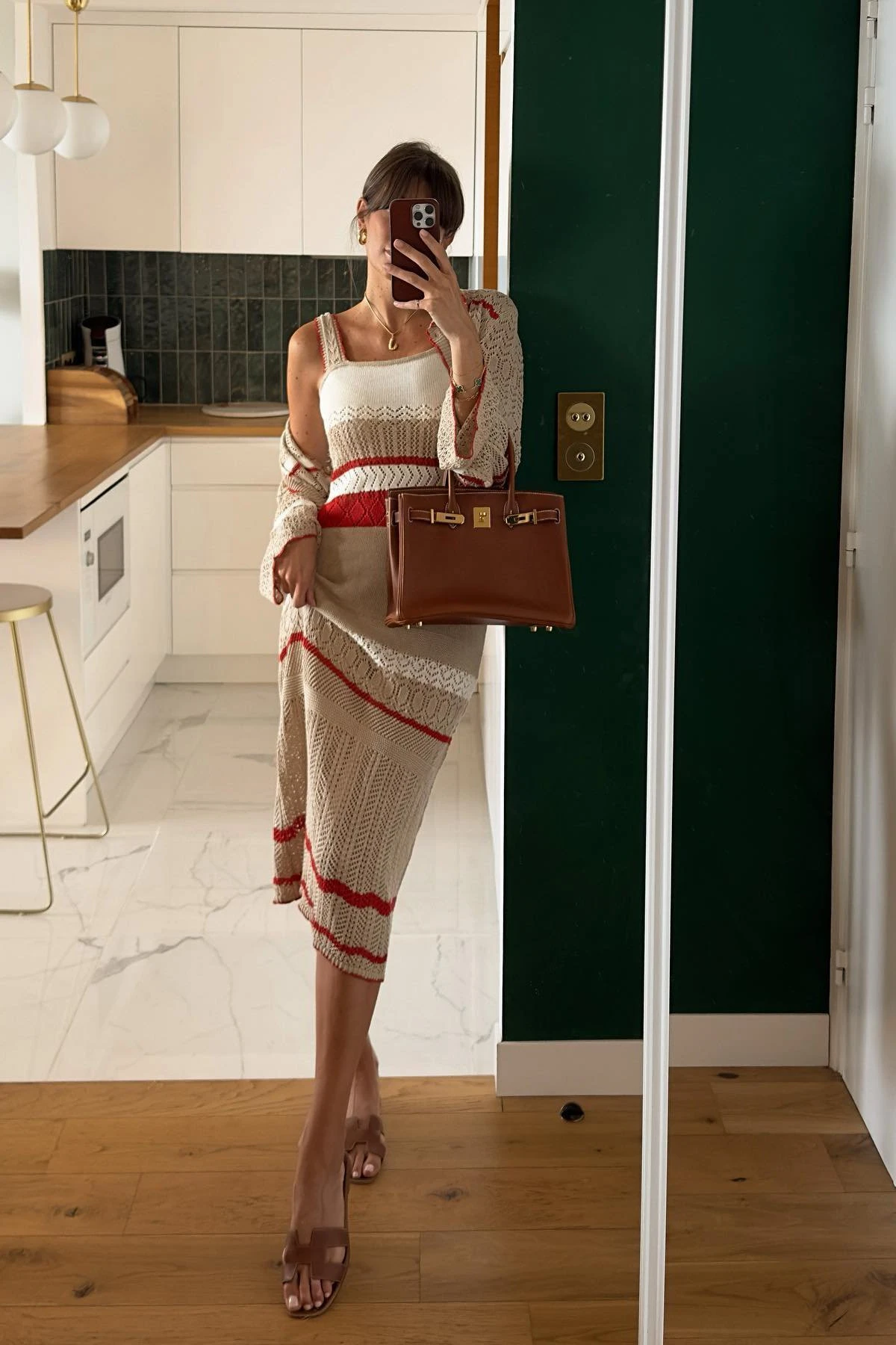 Cette robe midi est élastique et tricotée et a des détails à crochet. Elle a des bretelles larges.
