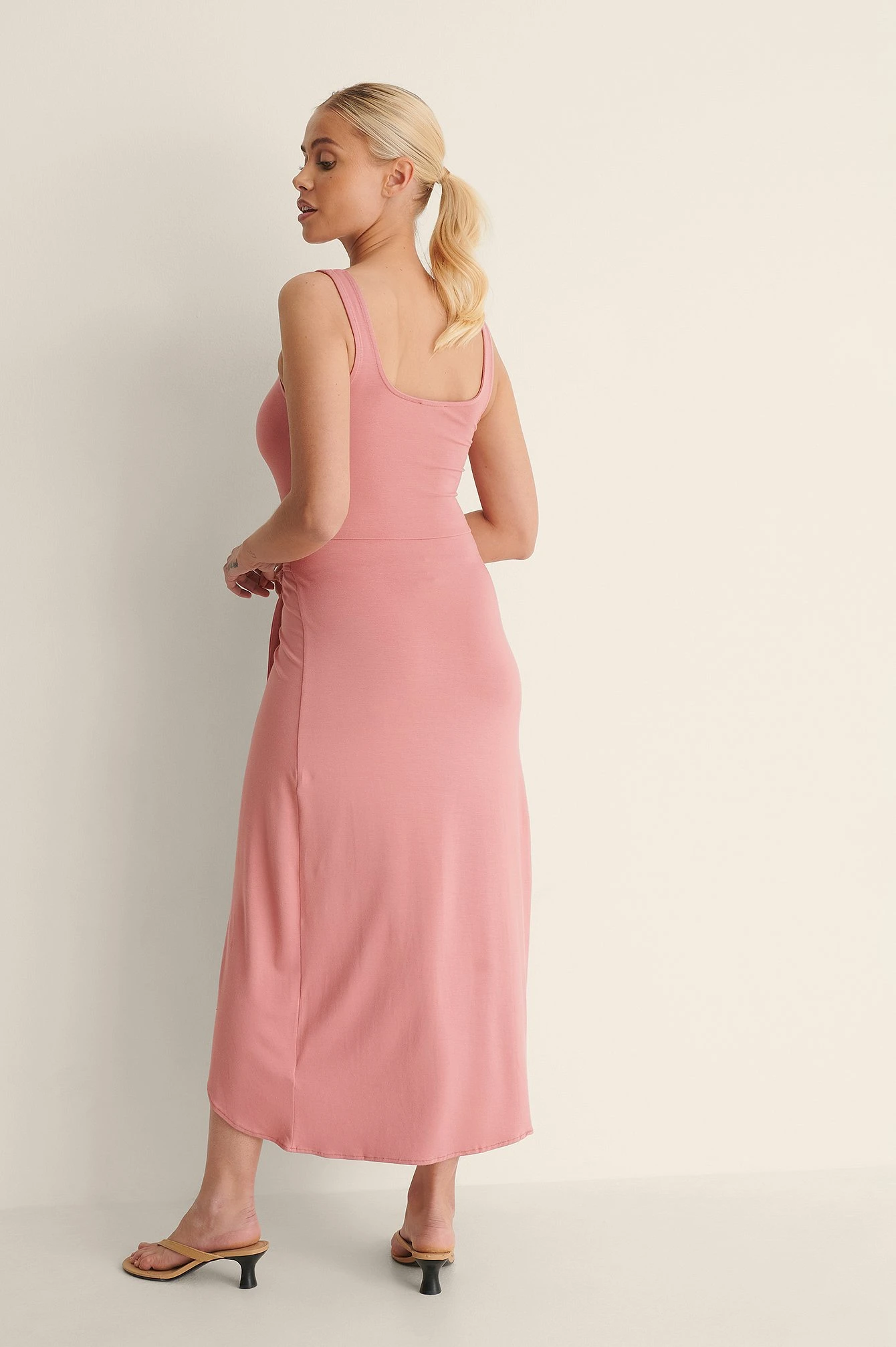 Cette robe a un col arrondi, un design sans manches, un ruban à nouer et une taille midi. Tous nos produits sont labellisés LENZING™ ECOVERO™ et composés d’au moins 50% de ces fibres. Une lettre de certification (FLC) rédigée par Lenzing™ est remise avec chaque livraison. LENZING™ ECOVERO™ est une viscose durable fabriquée à partir de pulpe de bois provenant de plantations contrôlées et certifiées. Selon Lenzing™, le procédé de production en place permet de réduire les émissions et d’économiser l’eau de 50%, comparé à la viscose traditionnelle.