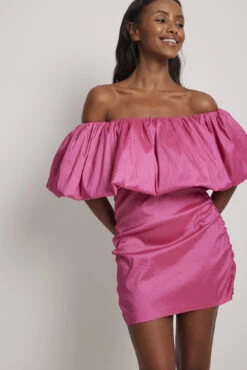 Cette robe a un design à une épaule réglable avec couche bouffante, une fermeture éclair et crochet sur le côté, une taille courte et des froncements sur les côtés.