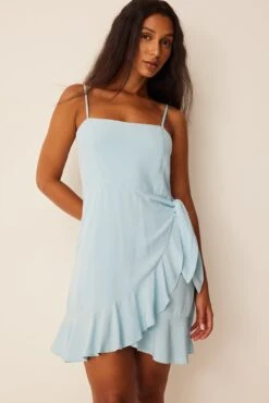 Cette robe a des bretelles fines et réglables, une fermeture éclair cachée sur le côté, un style chevauchant avec détail de noeud ajustable, une coupe fluide et une taille courte.