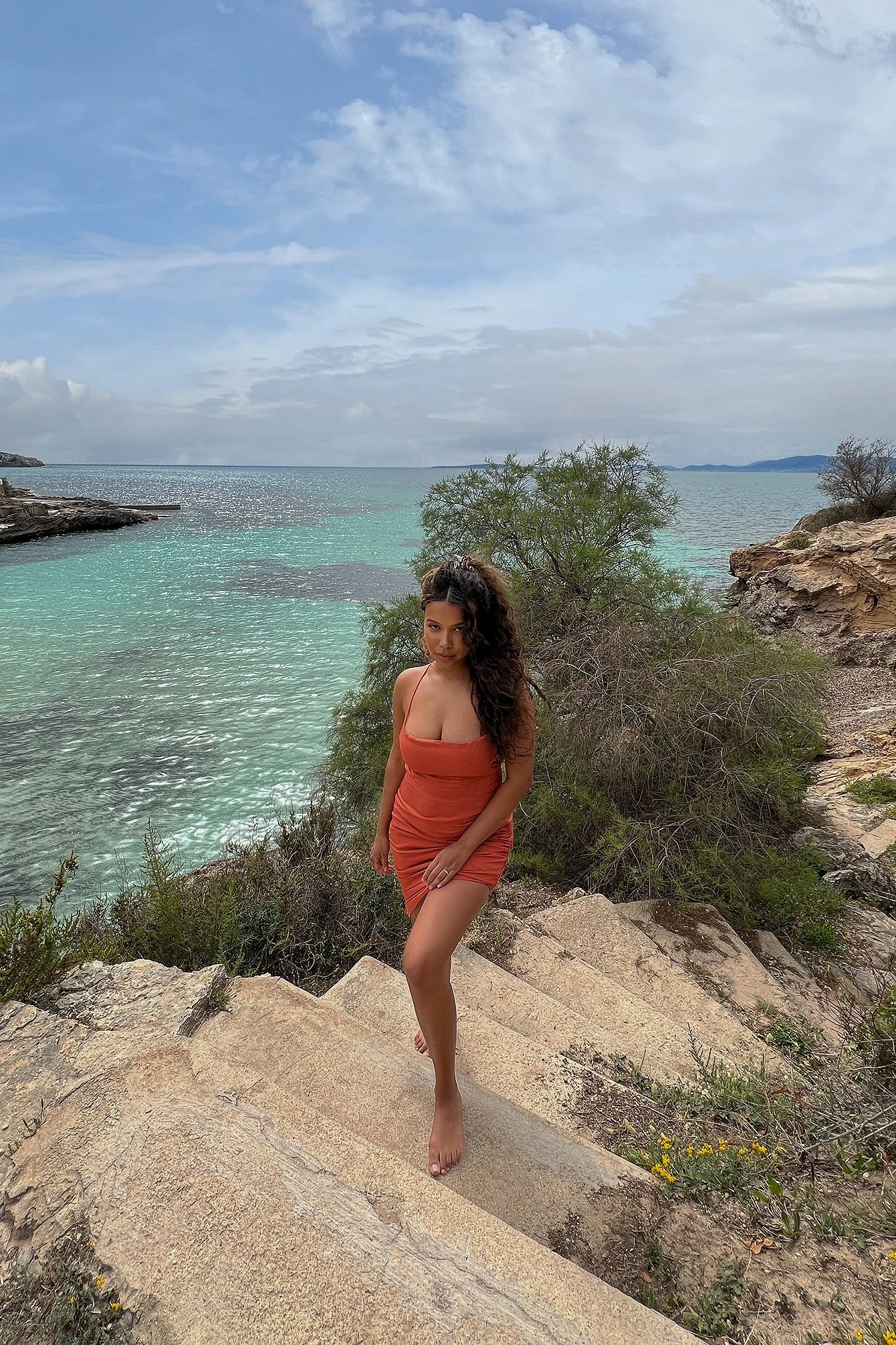 Cette robe courte a un dos ouvert avec détail auto-sérré, un détail drapé à l’avant et une fermeture au dos cachée.