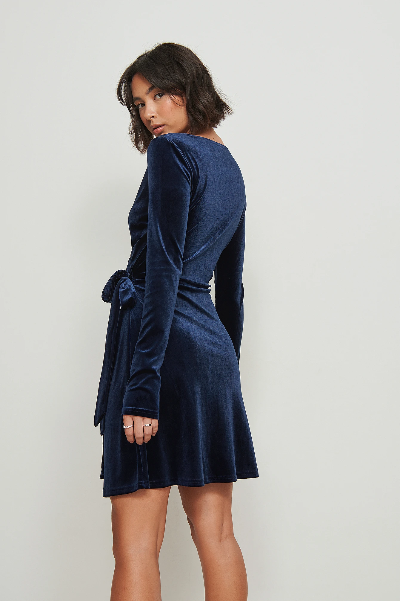 Cette robe en velours est à manches longues et a un design enveloppant avec détail noué et une taille courte.