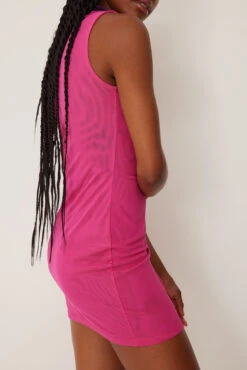 Cette robe a des manches longues, une taille courte, un col haut légèrement et une matière plissée.